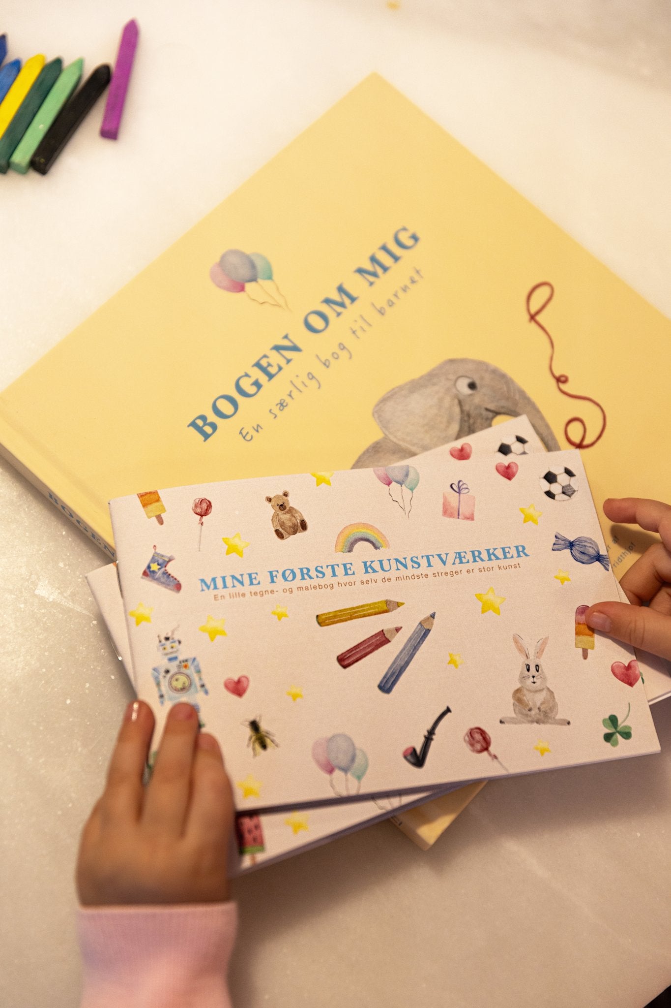 Siderne er perfekt størrelse til at kunne klippes ud og limes ind i vores BOGEN OM MIG, så barnets tegninger foreviges sammen med barndommens minder.