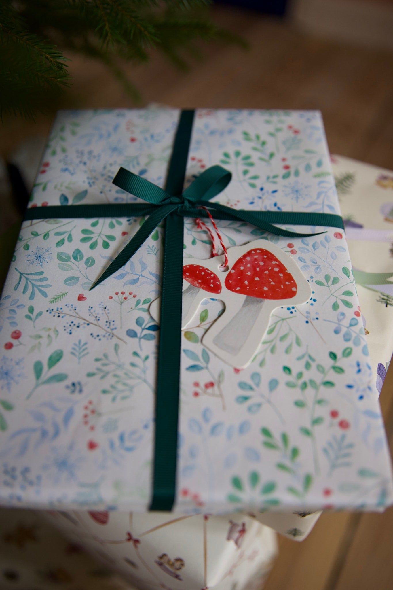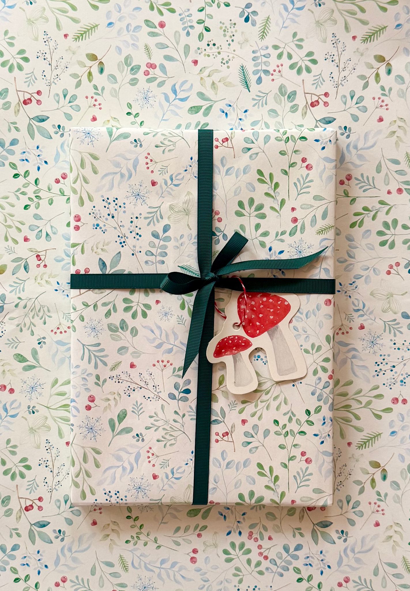 På gavepapiret finder du tryk af forskellige originalværker i akvarel – sat op i en grafisk komposition, der klæder gavepapirets format.