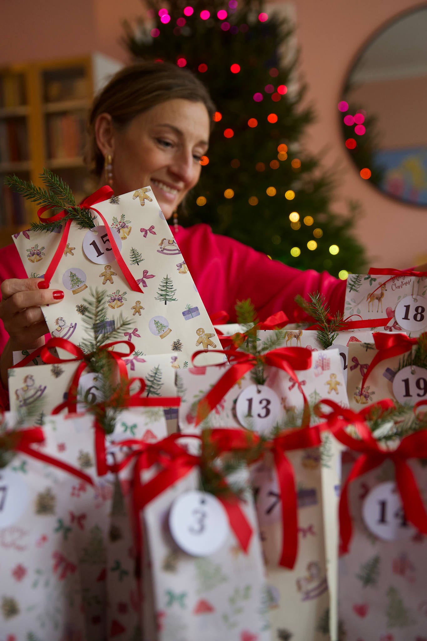 På gaveposerne finder du tryk af forskellige originalværker i akvarel – sat op i en grafisk komposition, der klæder gavepapirets format.