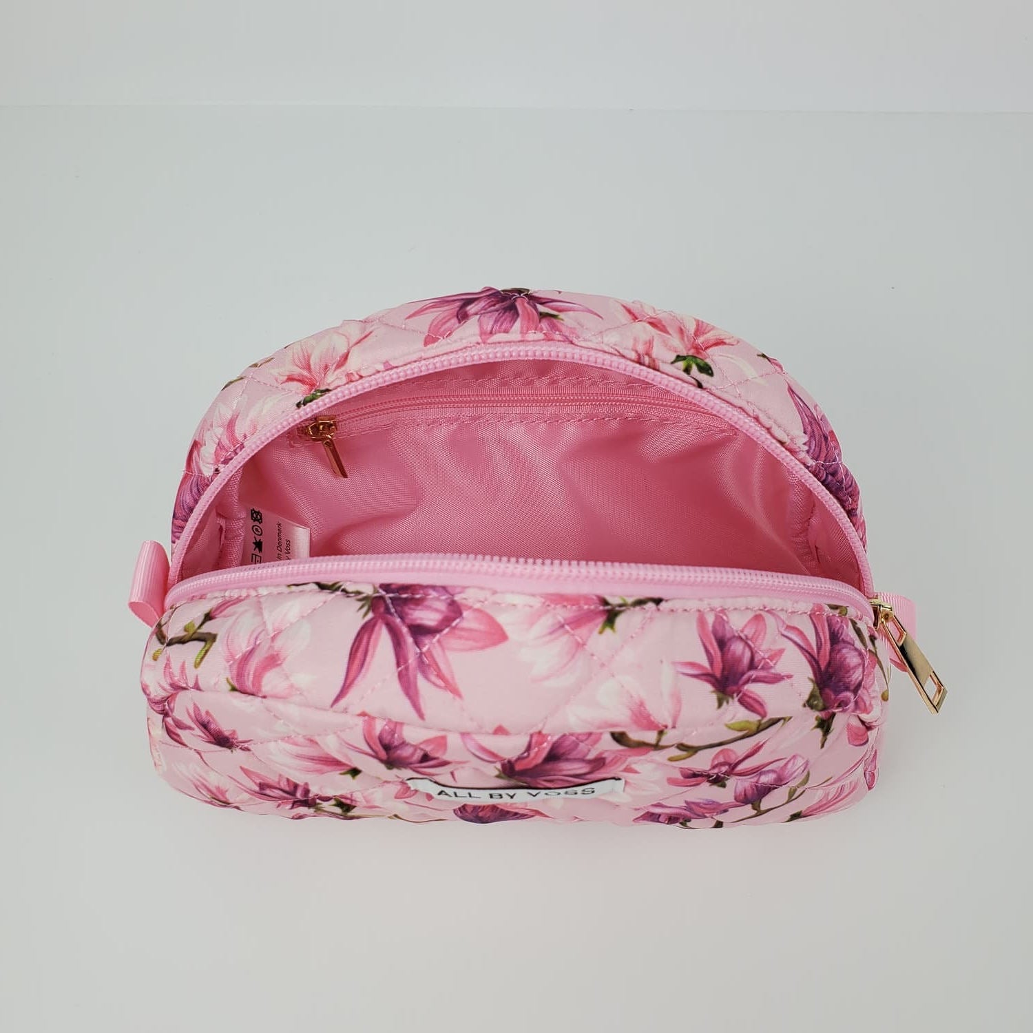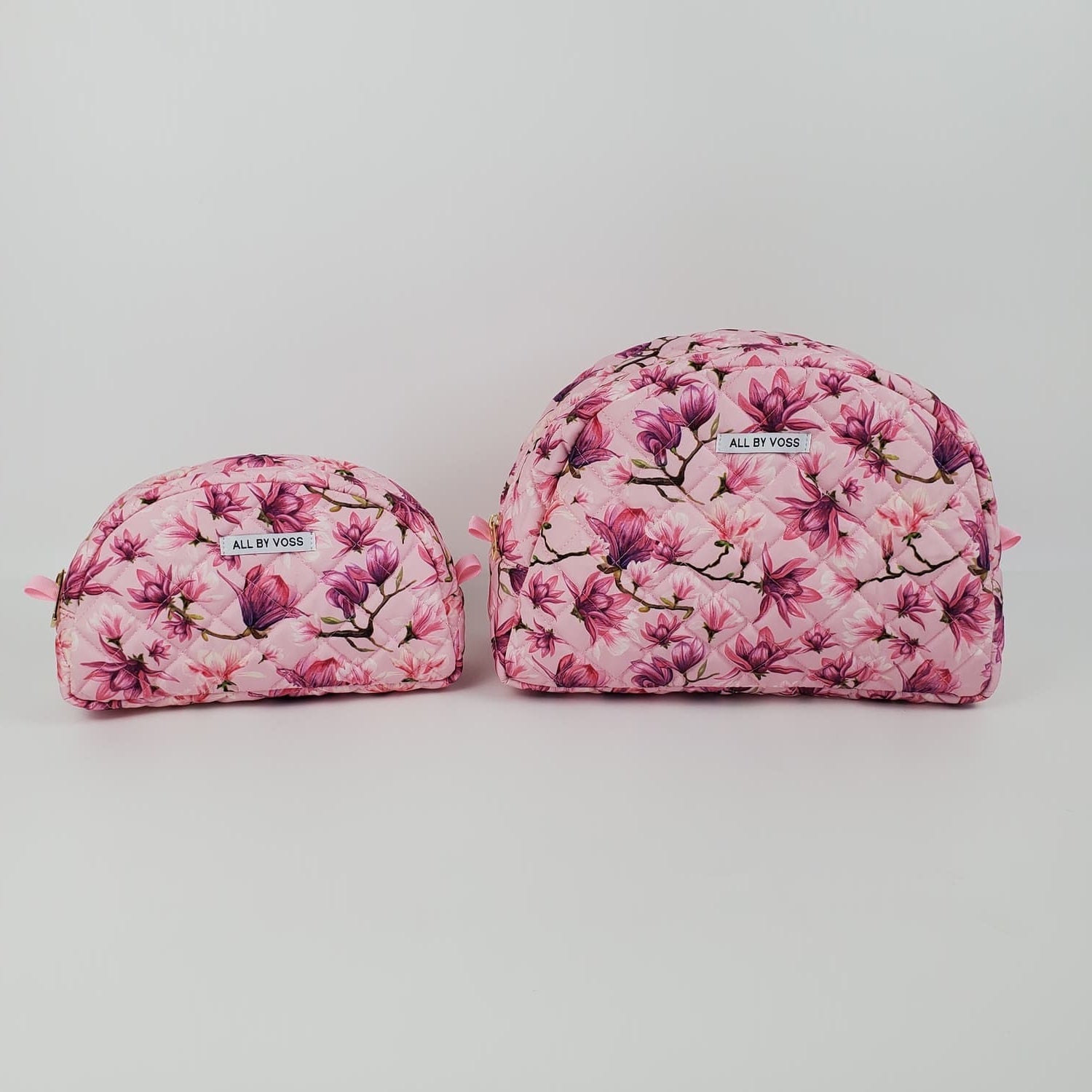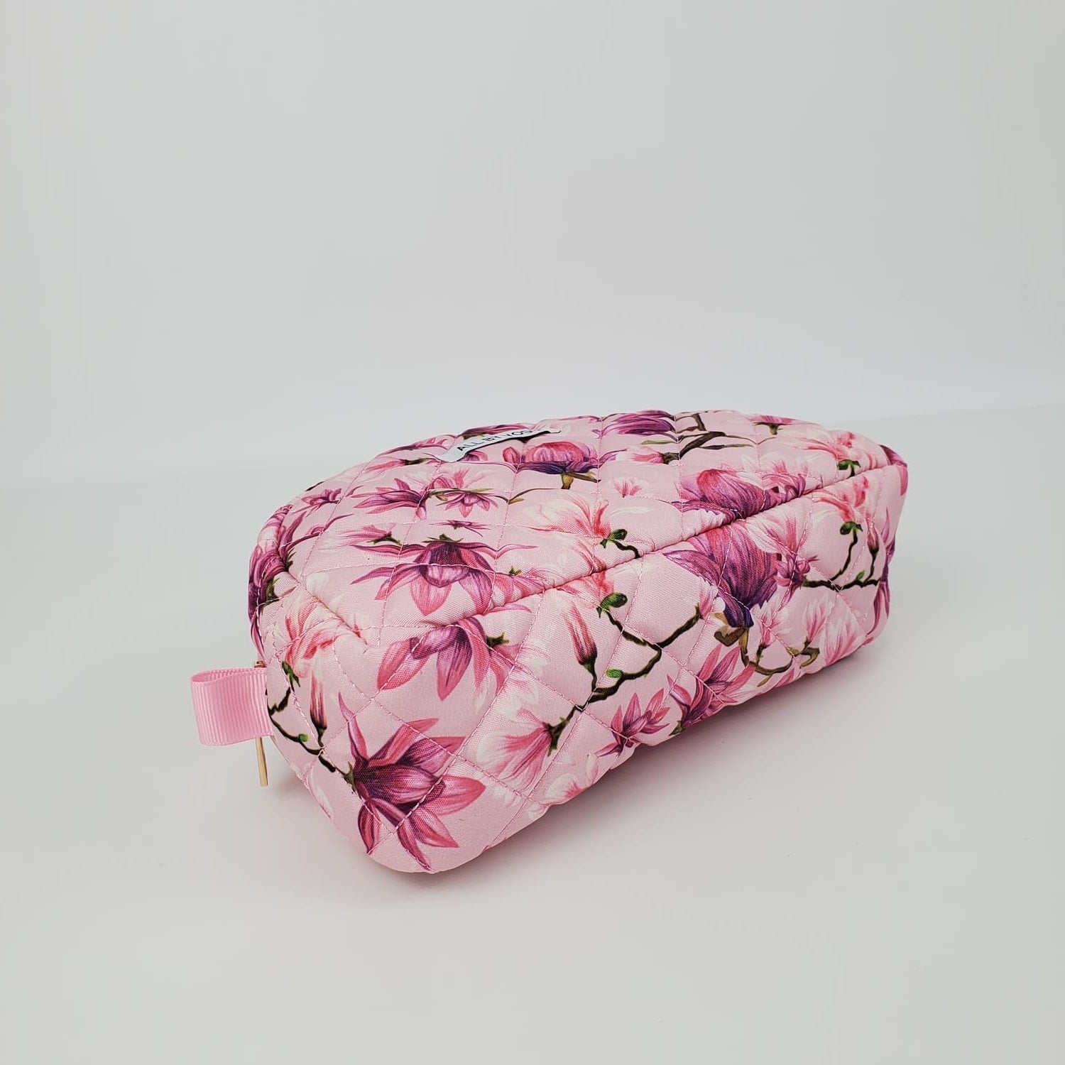 Forkæl dig selv eller én du holder af med denne slidstærke, smukke quiltede kosmetikpung med akvarelmotiver af magnolia på lyserød bund. Kosmetikpungen er af kraftigt, quiltet genanvendt polyester, der tåler at blive brugt.